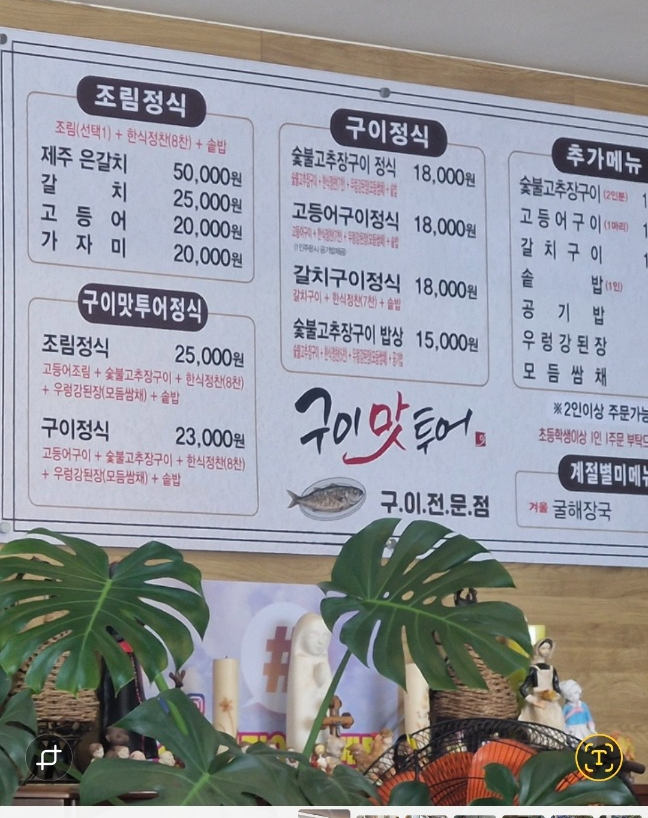 구이 맛 투어 매뉴판